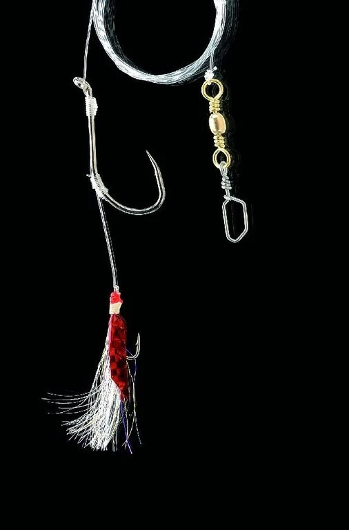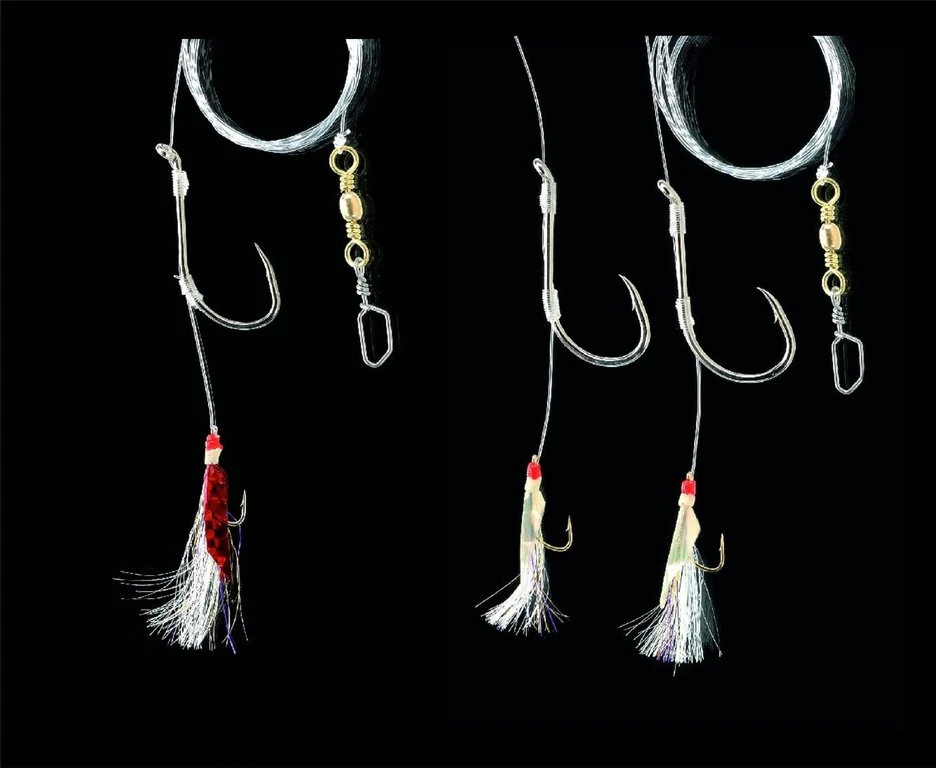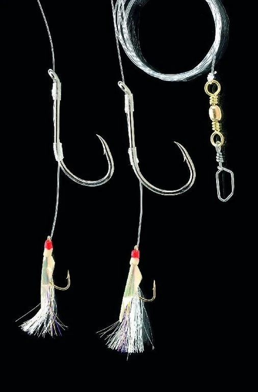 Dieses Vorfach ist perfekt für Norwegen. Am Nachläufer wird der Beutefisch wie z.B Makrele gefangen während das Boot treibt. Durch den gehakten Beutefisch werden die Großen wie Dorsch und Heilbutt aufmerksam und können so überlistet werden. Der Nachläufer ist mit echter Fischhaut versehen. Es gibt dieses System mit ein oder zwei Nachläufern. Die Vorfächer haben eine 0,90mm starke Hauptschnur, an denen Haken der Größe 8/0 angebracht sind. Das Vorfach mit einem Nachläufer hat eine Länge von 120cm und das mit zwei 180cm.