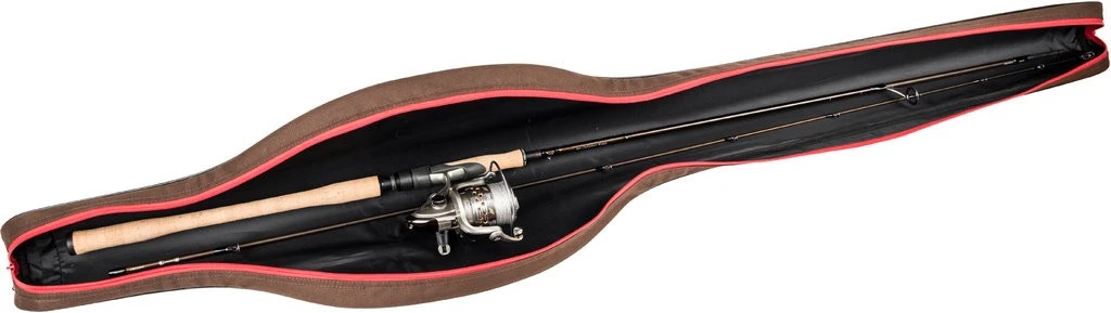 Dieses Rutenfutteral besteht aus sehr robusten, beschichteten 600D Polyestergewebe und fasst bis zu zwei Ruten inklusive Rollen. Es gibt drei verschiedene Längen für Ruten mit einer Länge von 7′, 9′ und 10′. Die Rutentasche verfügt über einen verstellbaren Schulterriemen. Die auf der Abbildung gezeigte Rute und Rollen gehören nicht zum Lieferumfang.